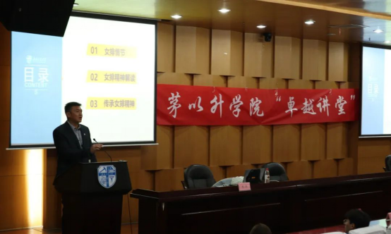 然后,刘江教授分享了见证中国女排夺冠的时刻,并阐述了女排精神的具体内涵,呼吁大家积极响应习近平总书记对于全国人民学习女排精神的号召。学习女排精神不仅是因为中国女排夺得冠军,更重要的是中国女排在赛场上展现了祖国至上、团结协作、顽强拼搏、永不言败的精神面貌。刘江教授还给大家分享了中国女排历年来当选“感动中国年度人物”的颁奖词。