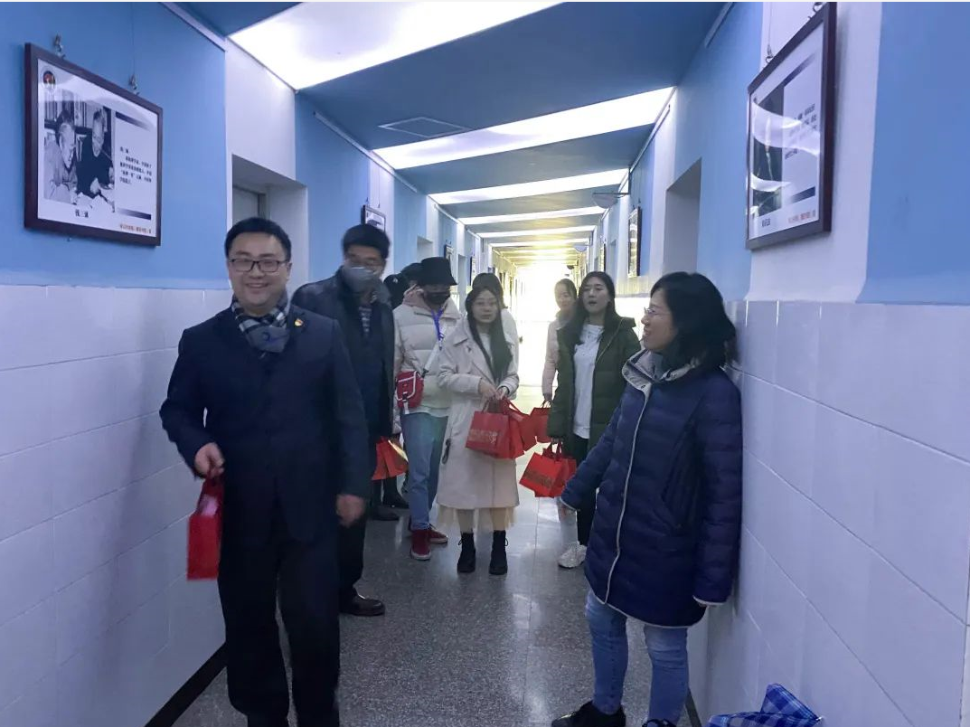 下午4时,甘霖老师、王霞老师与全体教职工在书院一楼集合,每个人手里都提着满满的礼包,准备给考研同学送上一份惊喜。