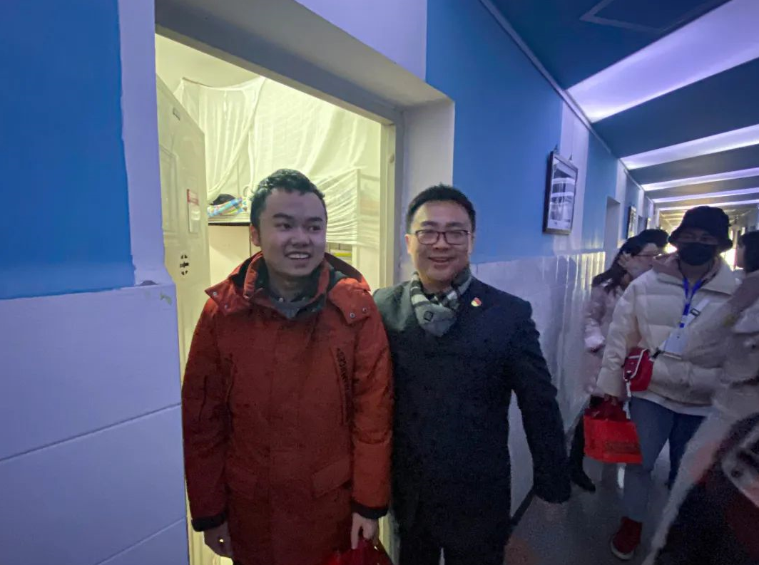 历时一个多小时,从二楼到五楼,一行人共走访了百余名考研同学的寝室,真挚地为他们送上了考试前的美好祝愿。同学们表示这一份祝福既惊喜又感动,更多的是温暖和幸福。