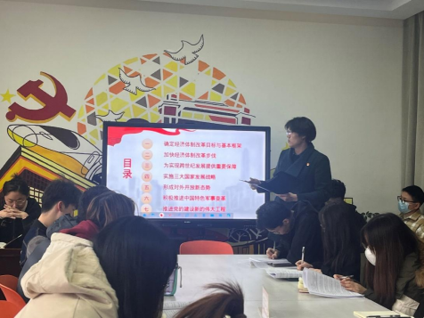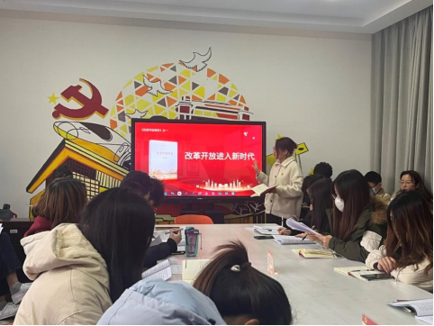 鲁鑫和徐浩然同学分别分享了导读部分及自己的学习感悟。改革开放为中华民族伟大复兴提供了更为坚实的物质基础、更为主动的精神力量以及根本遵循和信心之源。学习改革开放简史,一是要深入学习中国共产党领导中国人民走向新的征程的自我觉醒的历史。二是要深入学习中国共产党勇于革命、善于革命,不断把马克思主义原理与中国革命具体实践相结合的理论创新与实践创新的历史。三是要深入学习中国共产党领导中国人民所从事的改革开放实践,在中华民族发展史上、在世界文明史上留下来的不可磨灭的伟大功绩的历史。四是深入学习贯彻改革开放为推进中国特色社会主义事业、实现中华民族伟大复兴所具有的精神追求的历史。