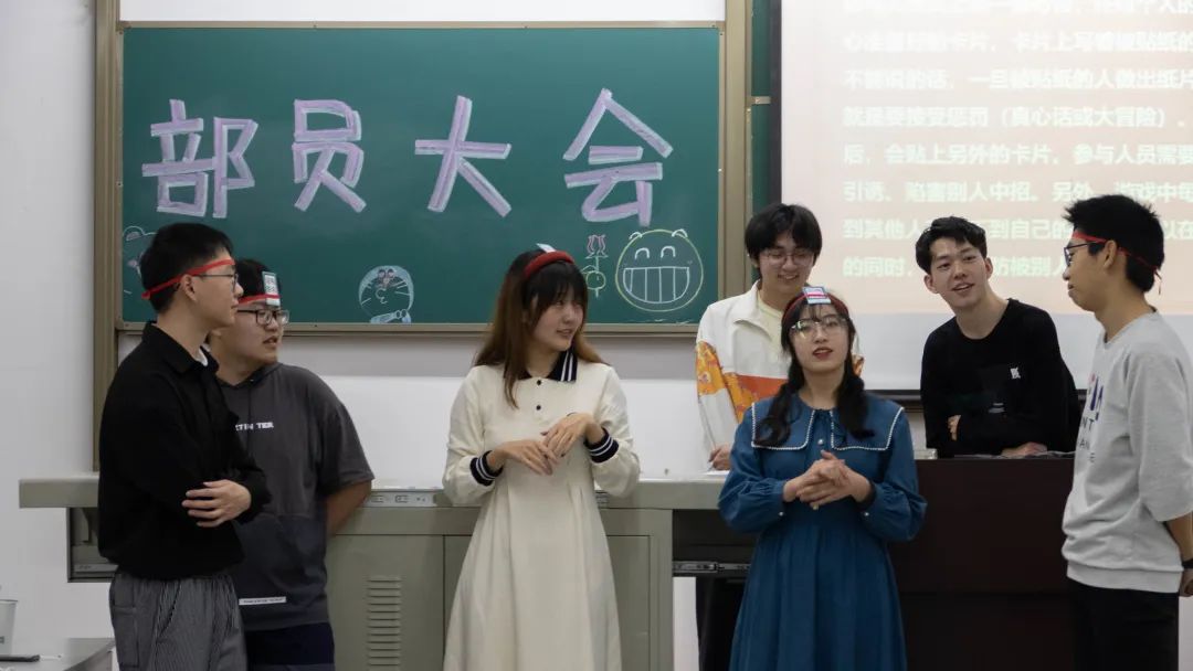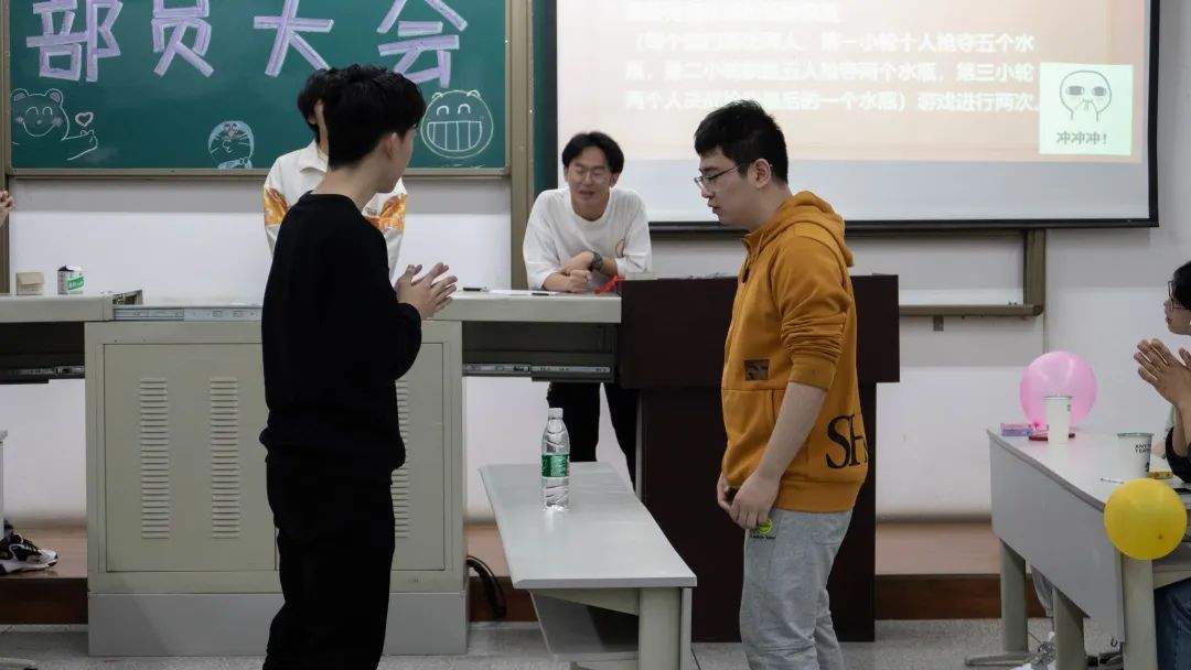 随后,大会进入了紧张刺激的游戏环节。大家在主持人的带领和协助下,开展了“猜歌名”“害你在心口难开”“五毛和一块”“抢水瓶”和“抢纸牌”的游戏活动。不论是“小曲库”文字部还是脑力体力均在线的摄影部,都令人印象深刻。从部员到部长、主席,再到老师,都全身心地投入,整个游戏环节充满了欢声笑语,在合作与竞争之间,各成员间的关系于无形中被拉近了,活动氛围愈发融洽。
