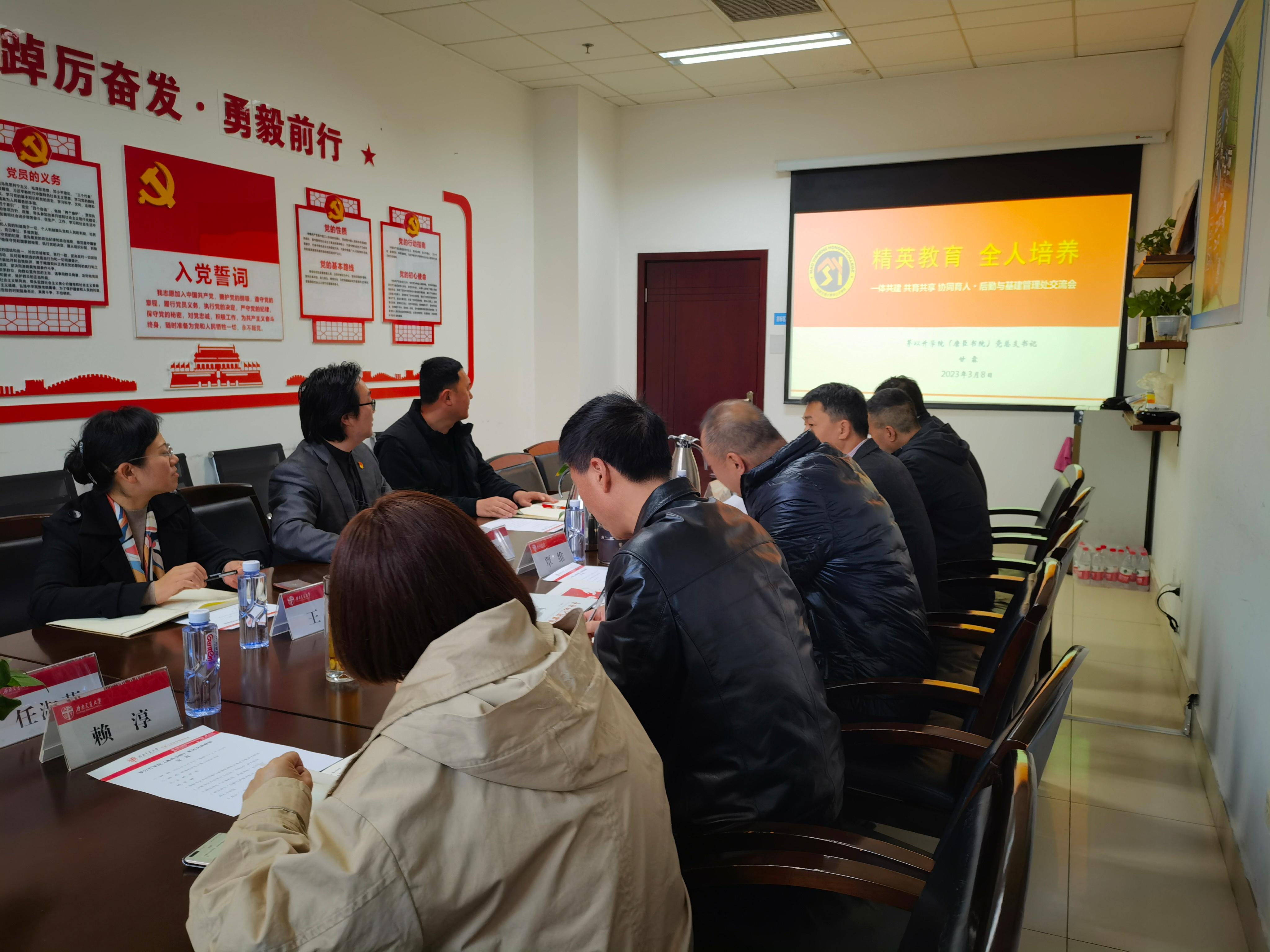 党总支书记甘霖一行前往后勤与基建管理处进行交流调研,商议“一体共建,共建共享,协同育人”工作。