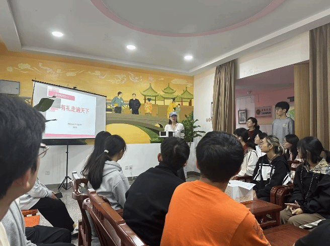 大使团承办,特邀利兹学院团委副书记屈嘉琪老师主讲。屈老师从礼仪文化的概念和重要性出发,将礼仪文化娓娓道来。从站姿坐姿到着装规范,再到社交礼节,每一个不经意的小细节都能体现出礼仪的重要性与普适性。屈老师也从心理学的角度和同学们分享了礼节中的暗示,指出不同的行为举止会给交流对象带来不同的心理感受,帮助同学们把握社交活动中的尺度。