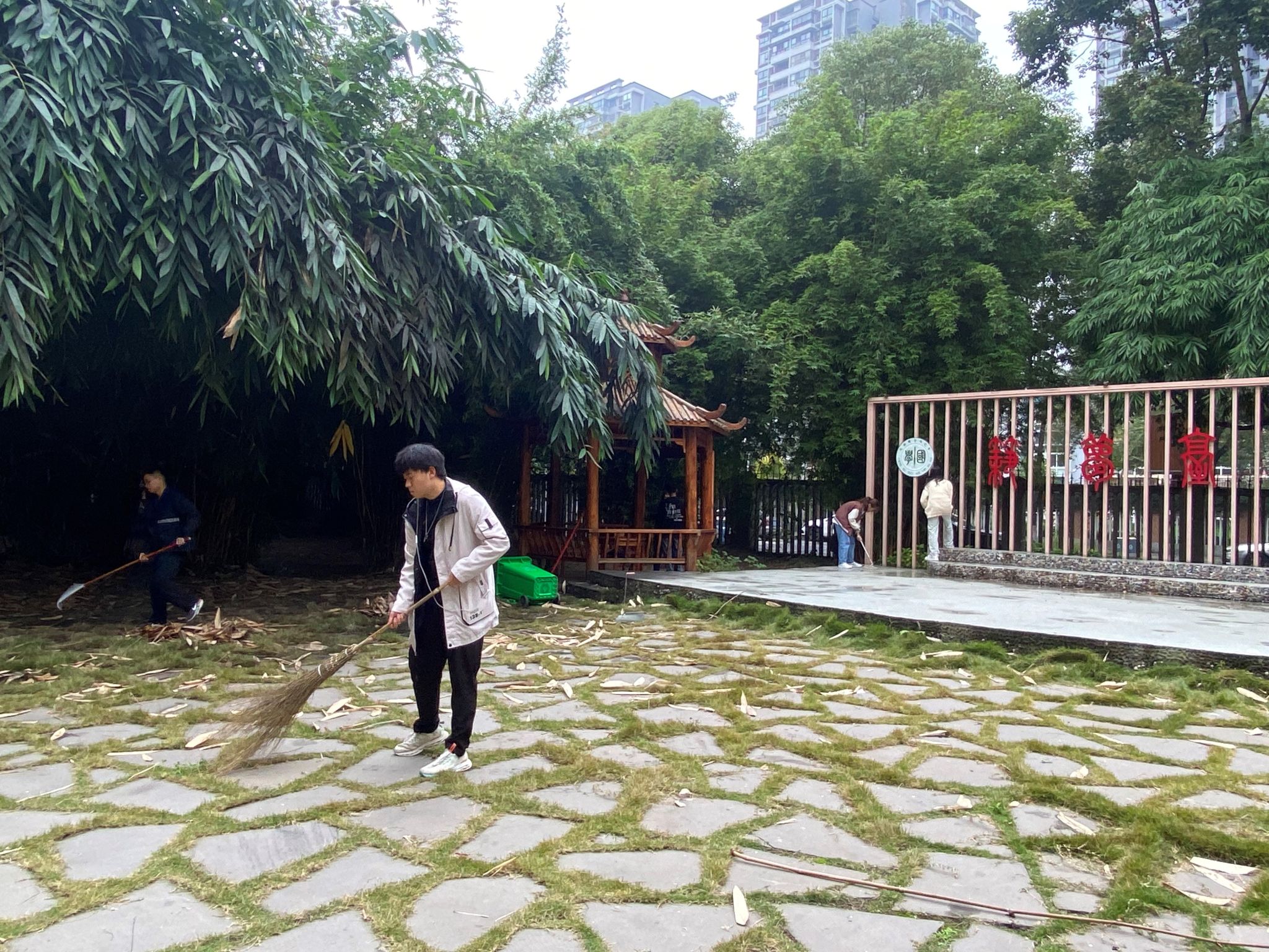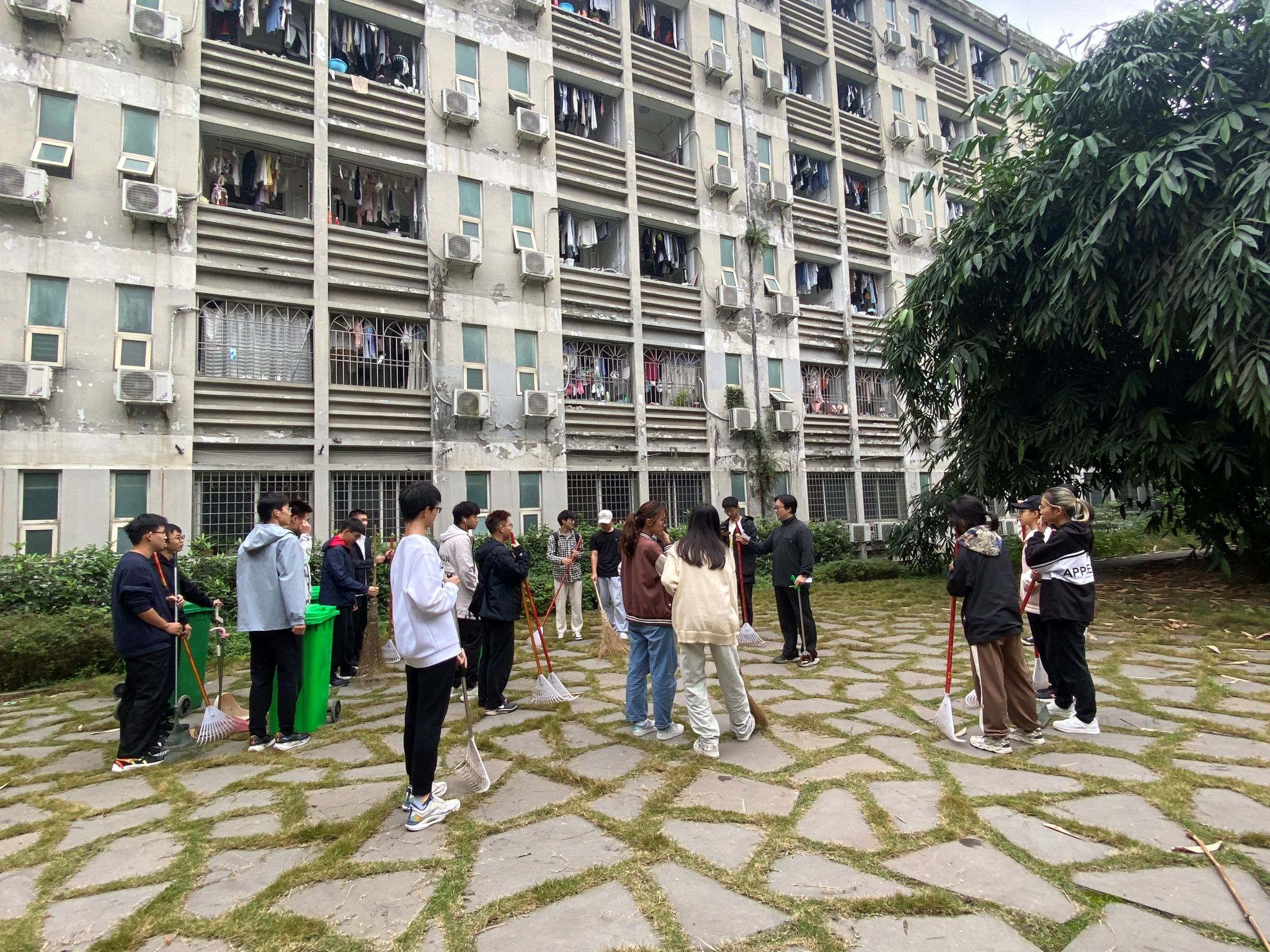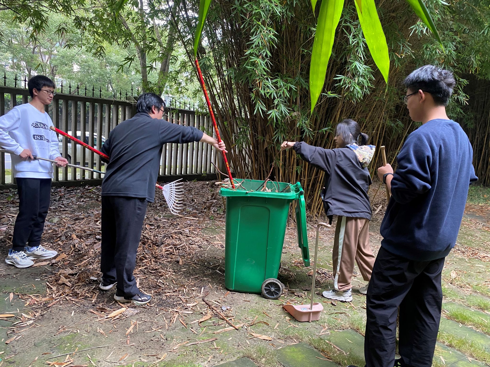 “筑梦园”开展了“筑梦劳动”志愿服务活动,党总支书记甘霖老师、副书记王霞老师、专职组织员孟涵老师与20名2023级茅以升班志愿者同学一起清扫园中落叶、清运垃圾杂物,共同维护书院美好环境,大家挥洒劳动汗水、体验劳动快乐,师生们其乐融融,乐在其中。