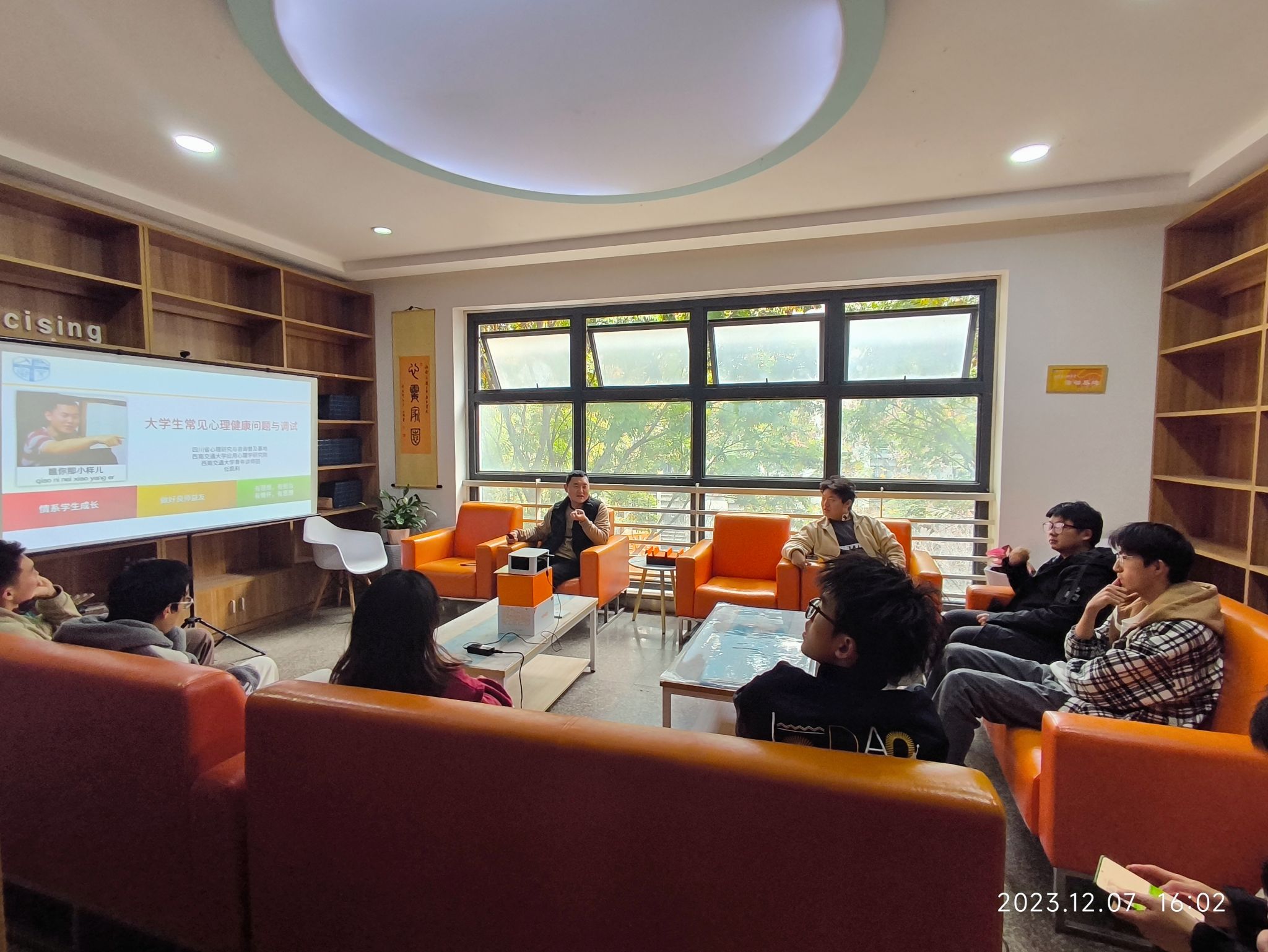 政务导师任凯利老师在书院4楼“心灵家园”举行了“大学生常见心理健康问题与自我调适”专题讲座。