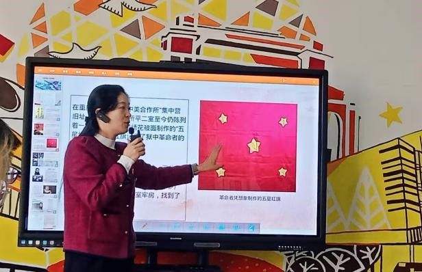 在六楼“党建走廊”的“党员课堂”,孟涵老师以“红梅赞歌”为题,聚焦红岩精神,给大家讲了一堂关于红岩故事的“音乐微党课”。革命先烈们在狱中绣红旗,忍受酷刑,绝不背叛革命,所展现的钢铁般的意志与百折不挠的信仰深深地震撼着同学们的内心,孟老师教唱的两首“红岩歌曲”——《红梅赞》和《绣红旗》更是引起大家喝彩连连。