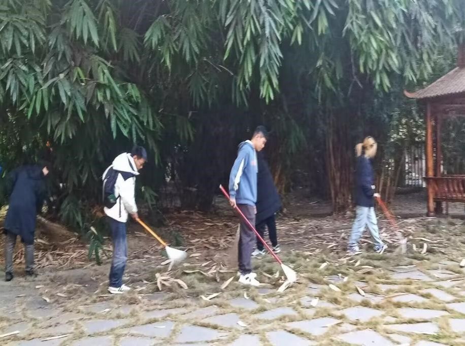 活动最后,各位驻院导师带领参观学生一起体验了一次“筑梦劳动”,师生一起清扫筑梦园,体现了茅院五育并举的育人理念。