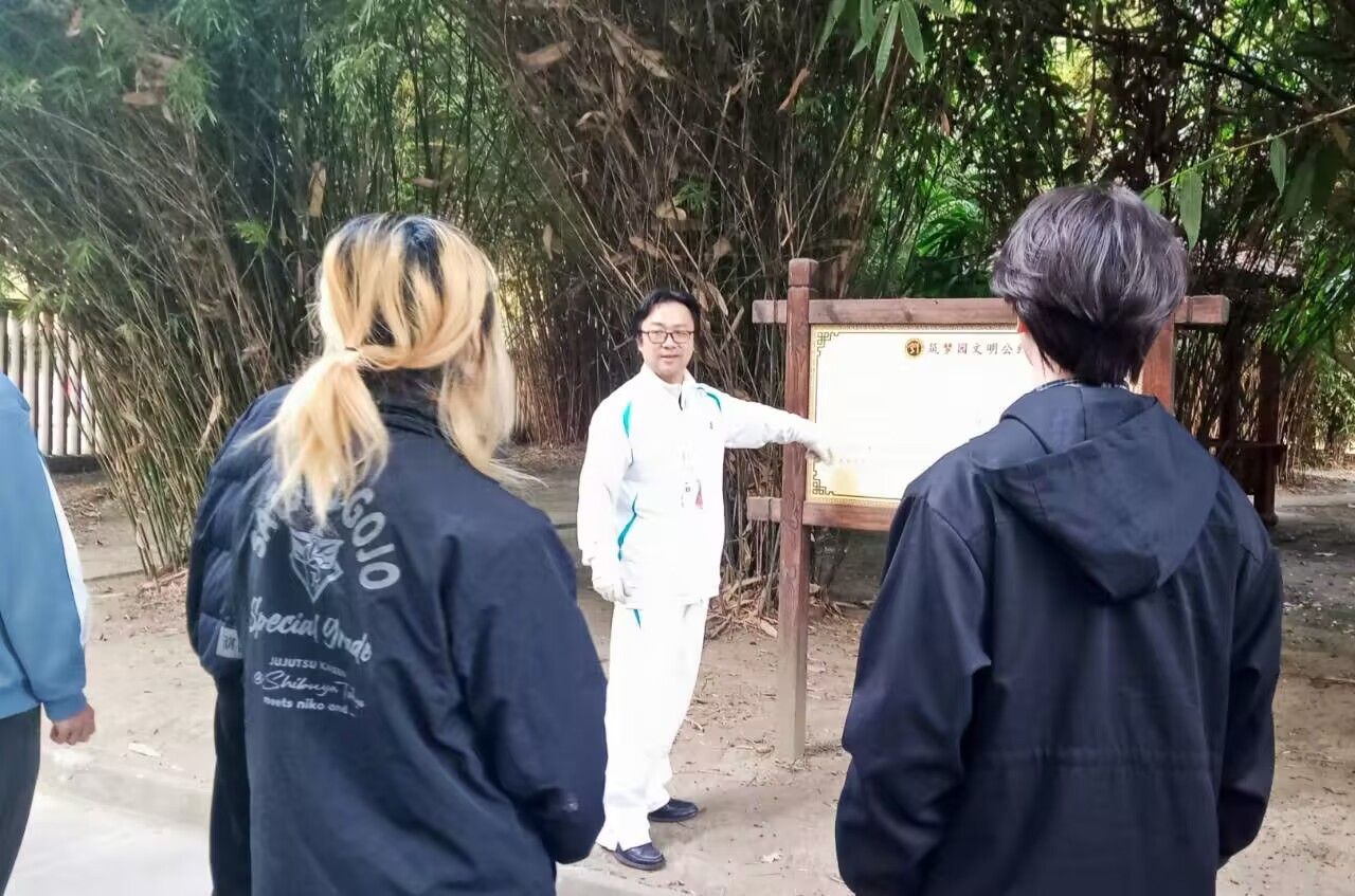 党总支书记甘霖老师来到“筑梦园”进行参观。甘书记从设立的“筑梦园文明公约”,到筑梦亭、共青亭、百年亭等主题亭子分别进行了介绍。