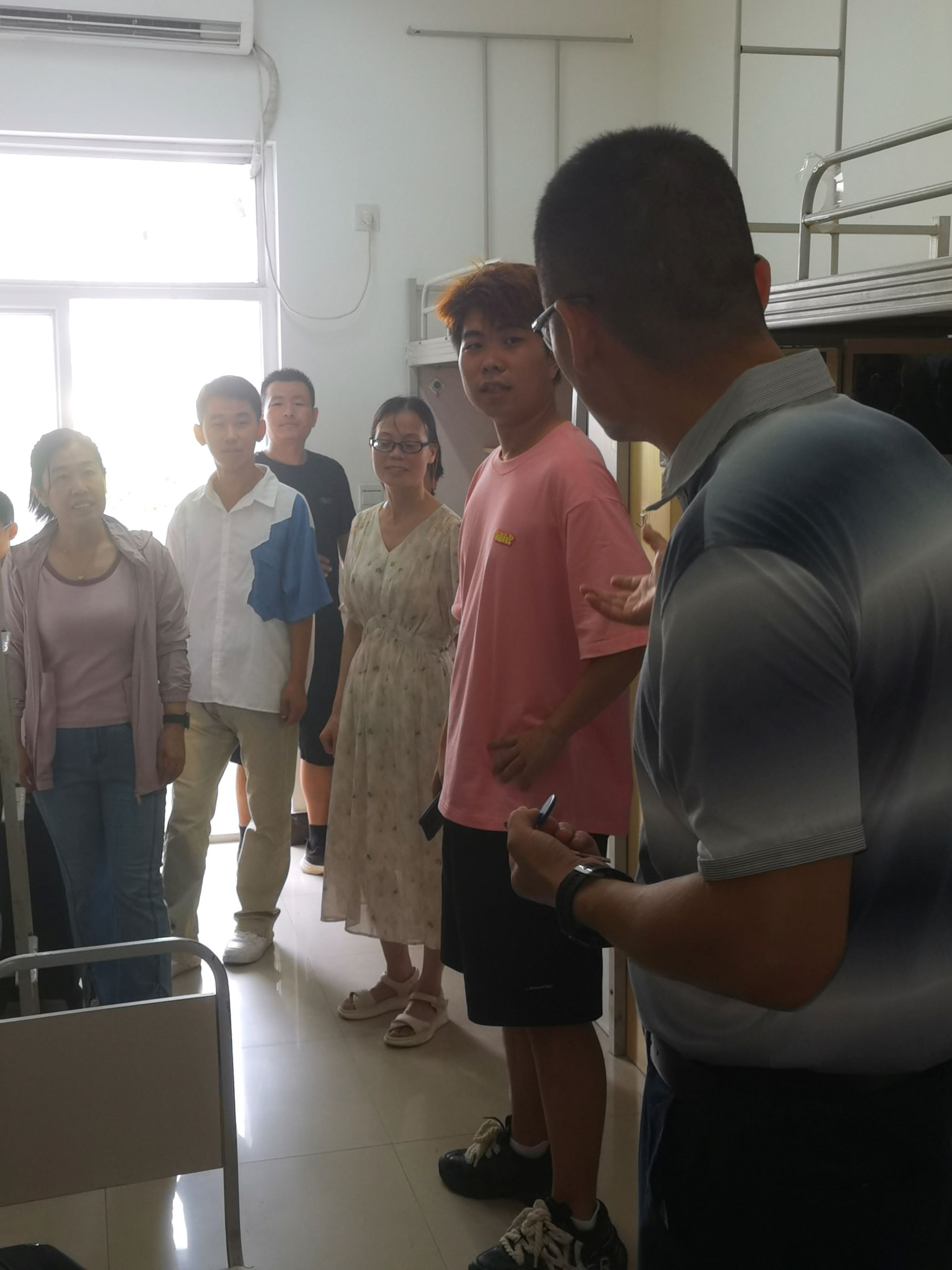 )宿舍门前人声鼎沸,热闹非凡。学院全体师生以最饱满的热情迎接270名新生的到来。报到现场,工作人员逐一为新生发放宿舍钥匙、入住指南及精心准备的新生礼包,寓意着学院对新生们学业有成、生活美好的美好祝愿。学院党总支书记李毅,党总支副书记、学生工作组组长杨宏毅,深入迎新报到现场及新生宿舍,走访慰问新生及家长并与其亲切交谈,用实际行动传递了学院对新生的深切关怀与热烈欢迎。在报到过程中,迎新志愿者始终面带微笑,耐心解答新生及家长的各类问题,诠释了“以学生为本”的教育理念。在茅院师生的共同努力与协作下,全体新生成功报到并顺利入住,为新生适应大学生活,开启人生新的篇章奠定基础。