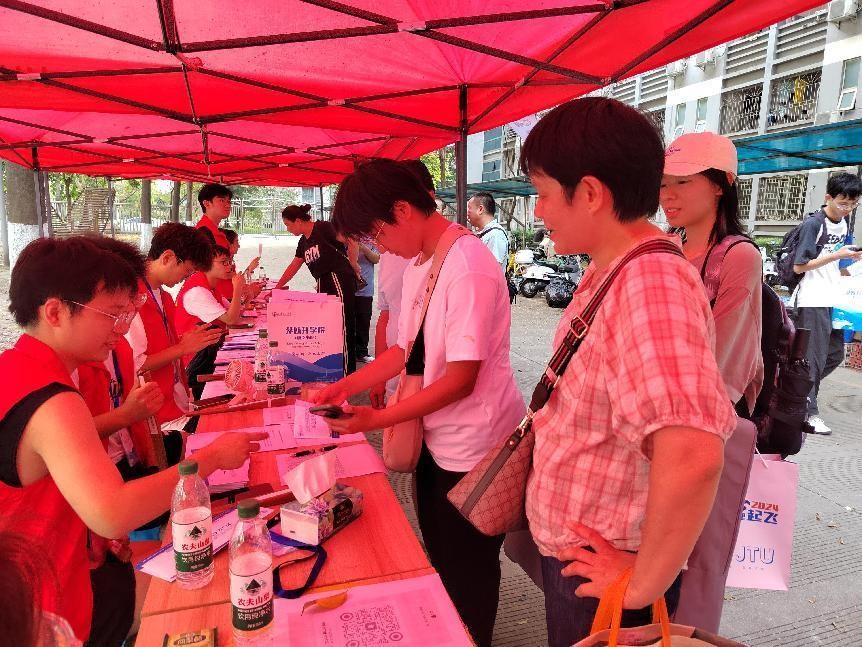 )2024级学生选拔须知》及校园地图,帮助新生快速熟悉校园环境。此外,还贴心地为新生及家长准备了矿泉水,并耐心解答他们的疑问,引导购买专用耳机以备英语听力选拔考试之需。