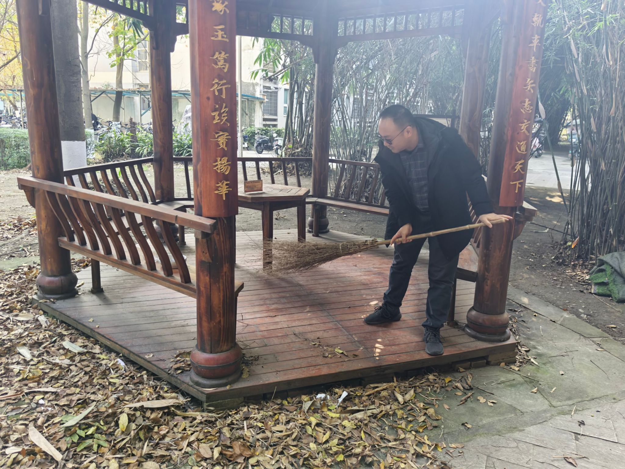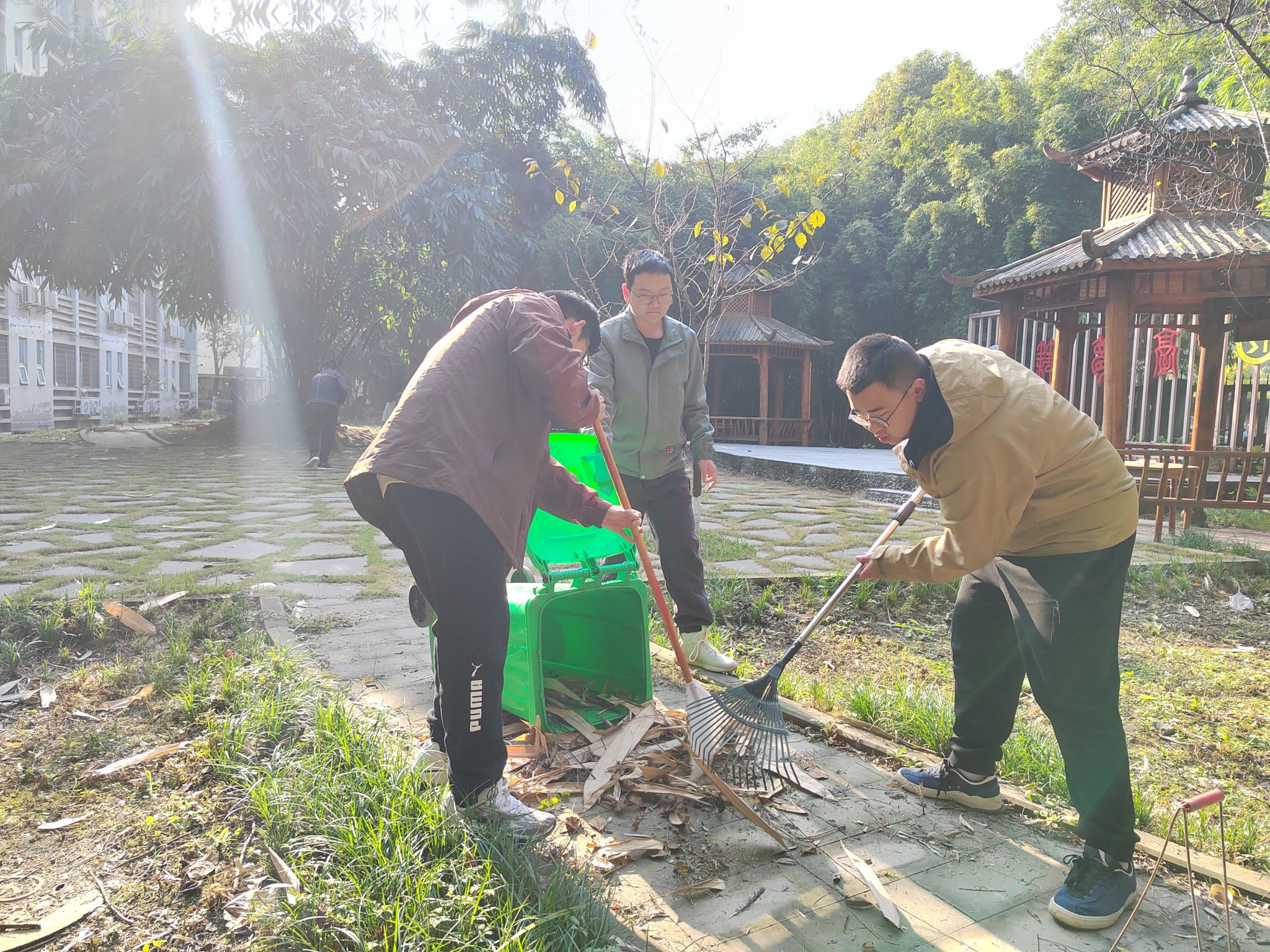杨宏毅带领着学生们满怀热情,一同前往筑梦园开展室外清洁活动。在秋风的轻拂下,园内的落叶铺满了小径,大家齐心协力地清扫,这些落叶很快被归拢成堆,得到了妥善处理。道路、花坛、休闲设施等各个角落都得到了细致的清洁,整个园区焕然一新,筑梦园更加充满了生机与活力,成为校园中一道亮丽的风景线。