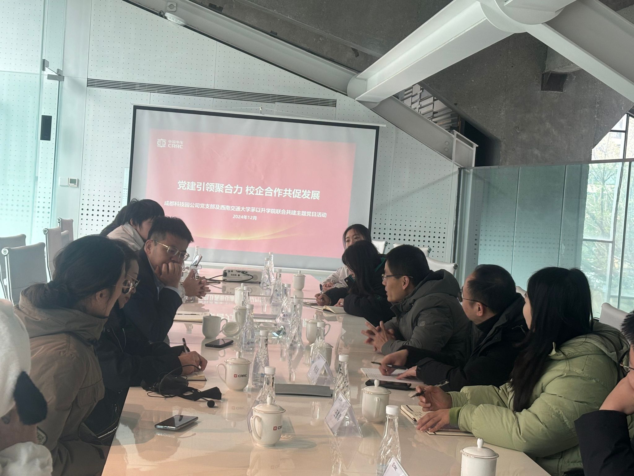 参观学习结束后,在中车机车展馆会议室,中车科技园成都公司谢惠明、顿继会、夏爽与我校师生交流,围绕“校企合作共促发展”等主题,开展专题研讨,分享经验与思考。