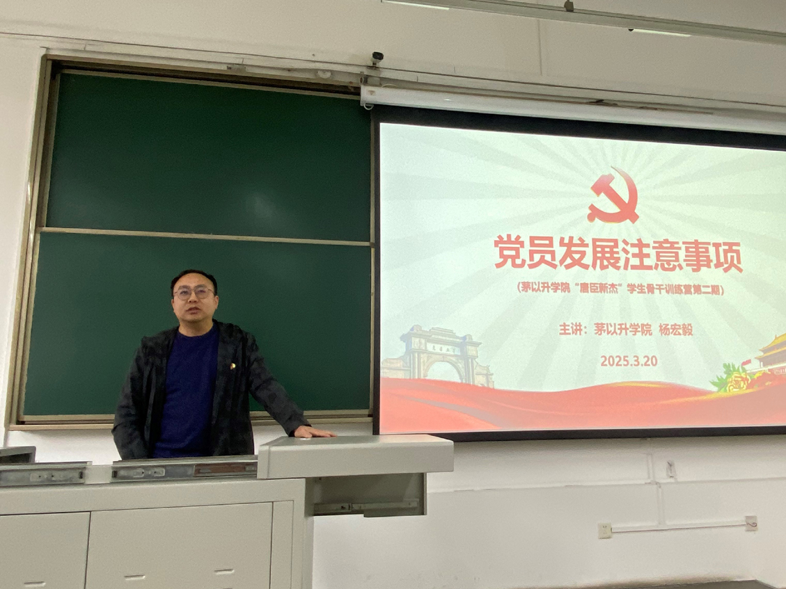 杨宏毅结合自身的工作经历和经典事例,对党员发展过程中的重点注意事项、如何规范填写表格等方面,给同学们进行了补充讲解。