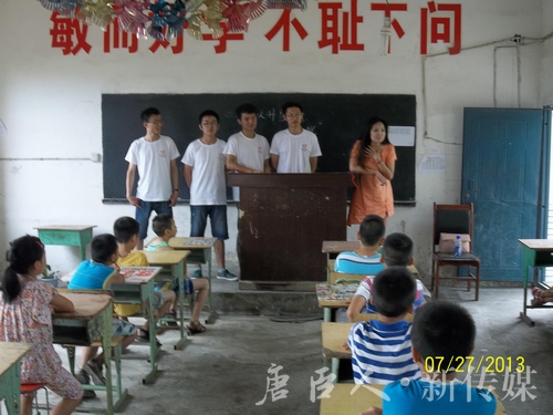 On July 27th 2013, volunteers from Mao Yisheng Honors College came to FuHe primary school at Pengshan county to communicate with students of FuHe Primary School.