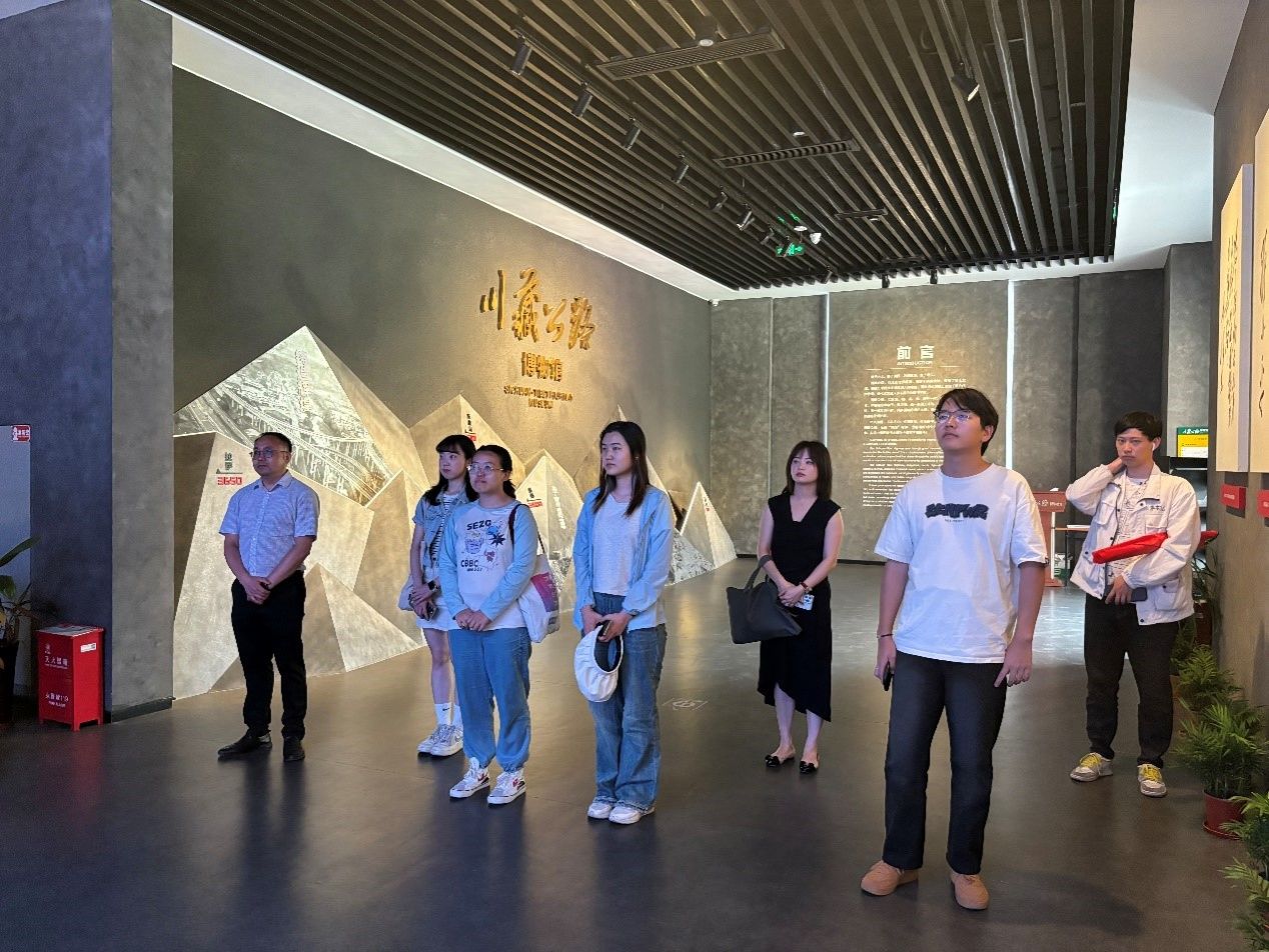 在川藏公路博物馆,师生们在讲解员的深情生动讲解中,深刻了解了世界上最艰险的公路之一——川藏公路的修建历程。大家沿着“序厅、历史抉择、天路长歌、薪火相传、尾厅、文创区”六个展厅,仔细观看70多年前修建川藏公路建设的珍贵影像资料、筑路工具、生活用品以及相关报刊、徽章和旗帜等,认真聆听讲解员热情分享的一个个筑路故事,学习了10多万名筑路军民奉献出的“一不怕苦、二不怕死,顽强拼搏、甘当路石,军民一家、民族团结”的“两路”精神,师生们深受感动,深刻地接受了一次“两路”精神震撼人心的思政教育。